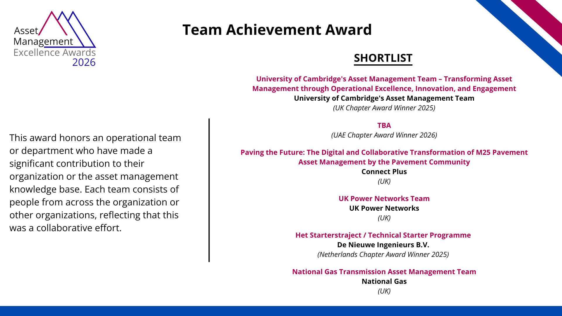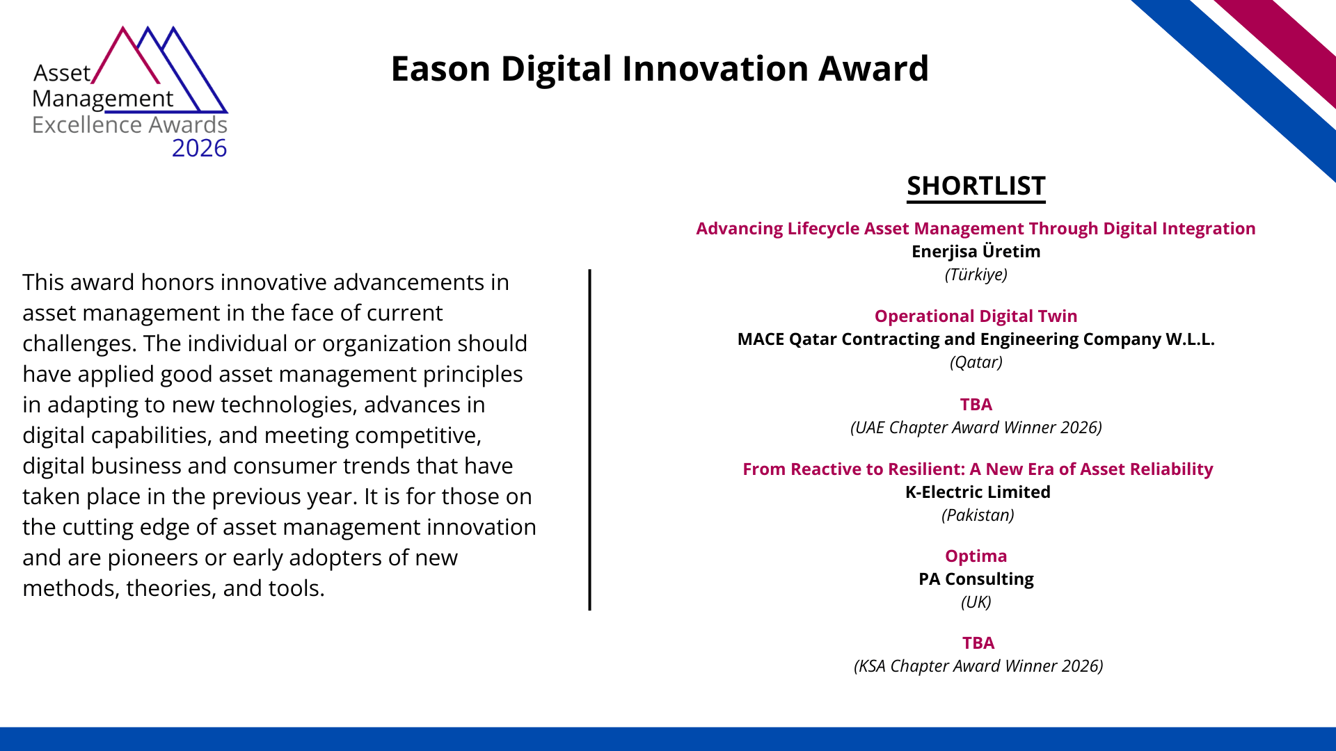 Please note that the IAM KSA and  IAM UAE Chapter Award winners will be announced prior to the IAM Asset Management Excellence Awards 2026.