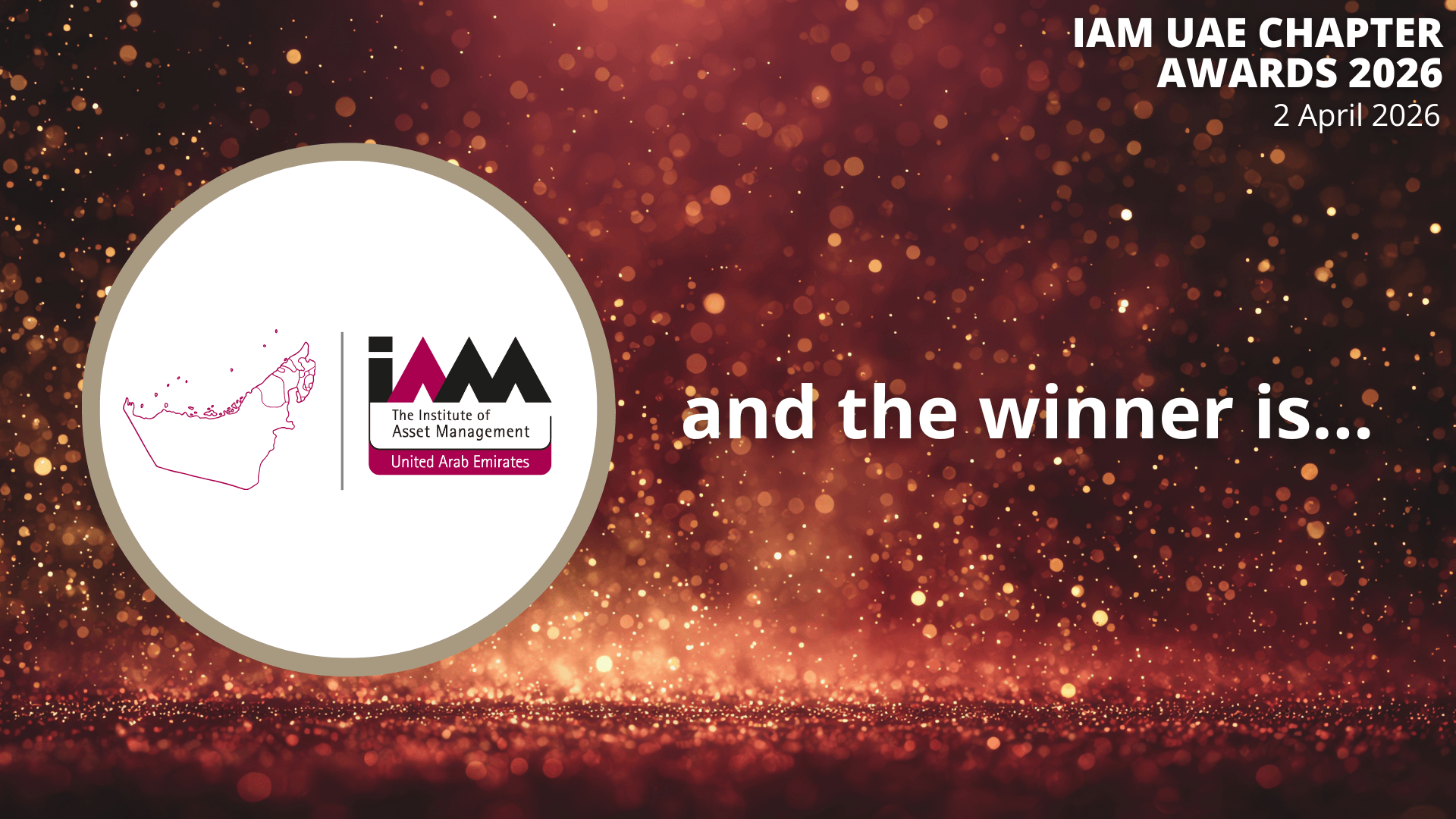The UAE Awards winners were announced live during the IAM UAE Virtual event 2026 - Lifetime Asset Management in Fast Developing Countries and presented by Dr Najib Dandachi (UAE Chapter Founder & Chair) and Ursula Bryan (IAM CEO).