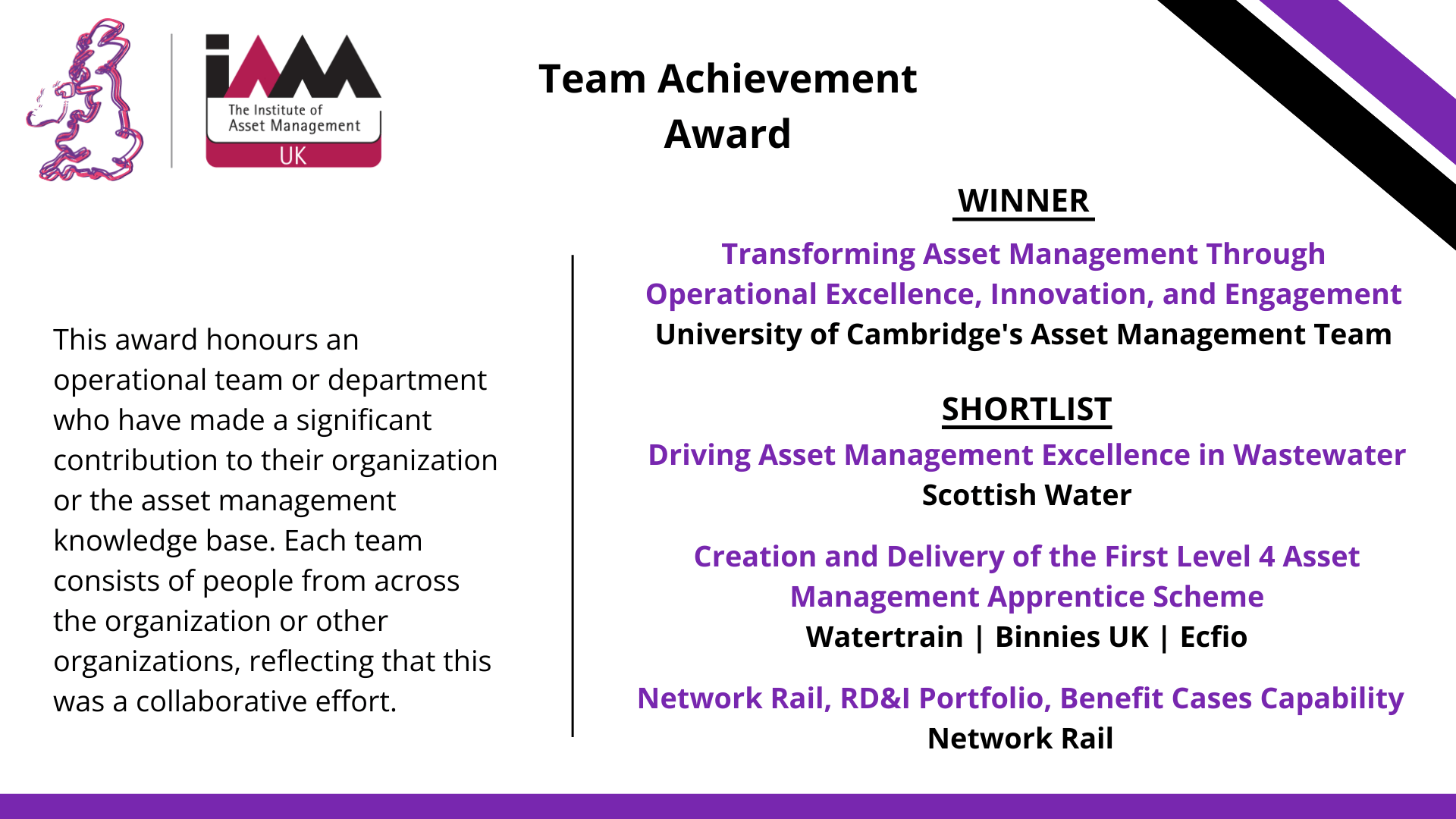 WINNER: Transforming Asset Management Through Operational Excellence, Innovation, and Engagement - University of Cambridge's Asset Management Team