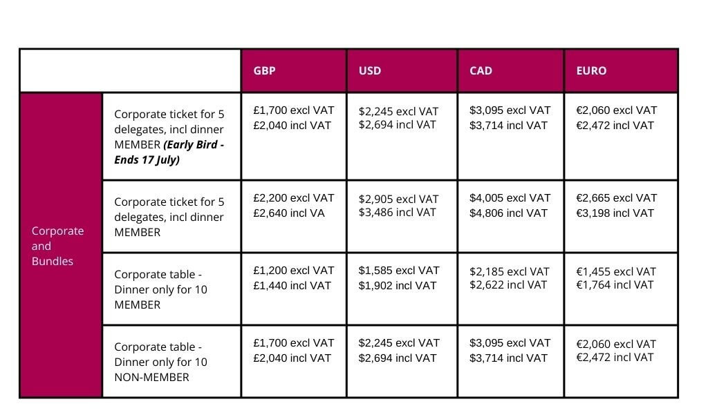Don't miss out on the chance to network and celebrate the achievements of the IAM UK Chapter Awards 2026 that will launch soon, by booking a corporate table or why not take advantage of our bundle offer which will give five delegates access to the whole event including the dinner pricing below. If you would like to book either of the options below please email Events@theiam.org