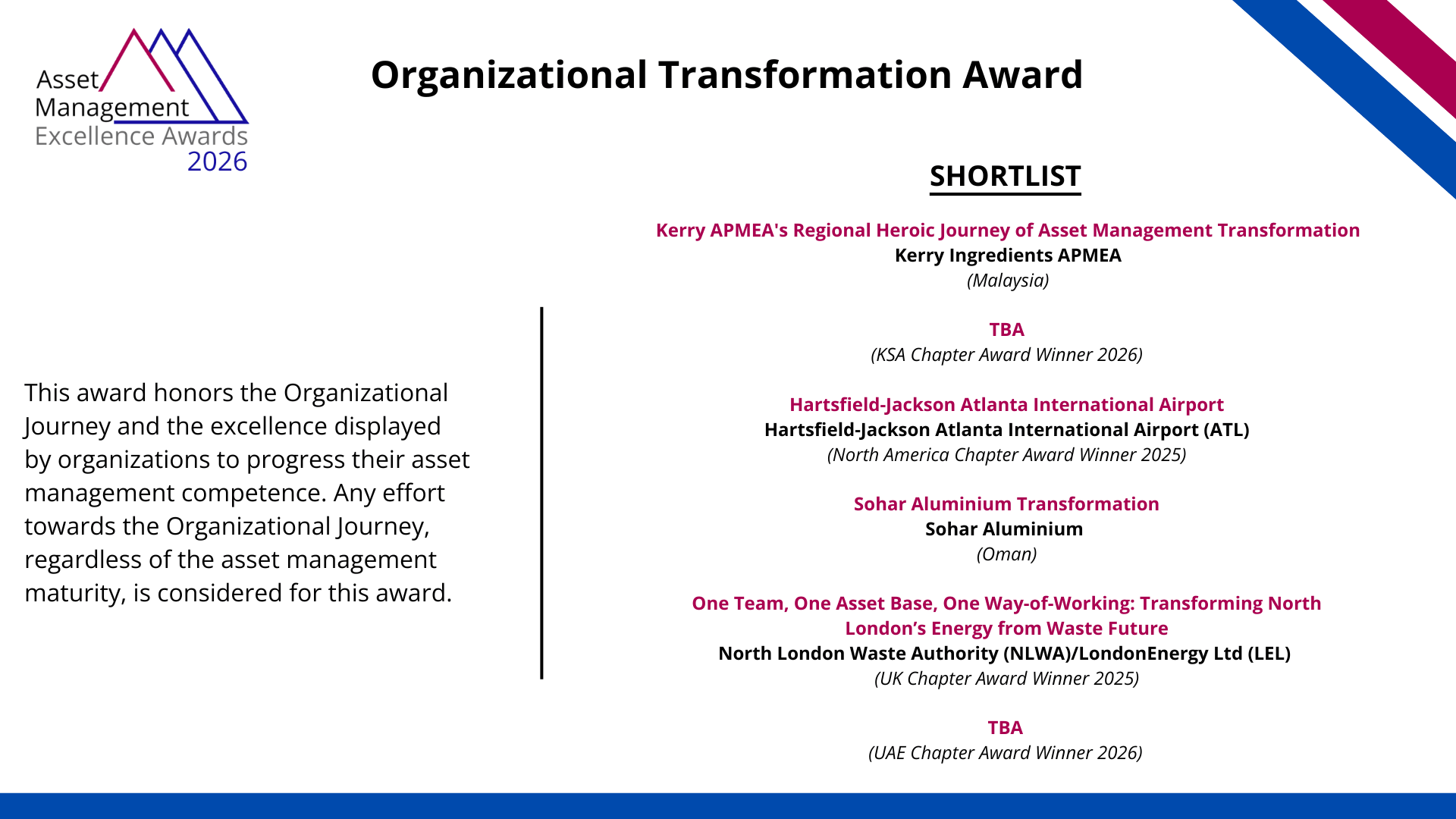 Please note that the IAM KSA and  IAM UAE Chapter Award winners will be announced prior to the IAM Asset Management Excellence Awards 2026.